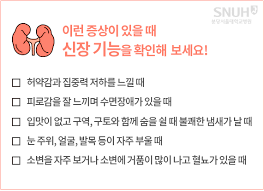 신장이 안좋으면 나타나는 증상을 조기에 발견하기 위해서는 정기적인 건강검진이 중요합니다. 소변 검사와 혈액 검사로 신장 기능을 체크하는 것이 필요합니다. 나트륨 섭취를 줄이고, 건강한 식습관을 유지하는 것도 신장병 예방에 큰 도움이 됩니다. 신장이 안좋으면 나타나는 증상에 대해 알아두고, 예방적으로 관리하는 것이 중요합니다.
